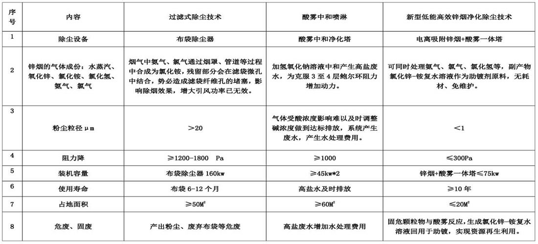 低能高效鋅煙凈化除塵技術(shù)優(yōu)勢(shì)(以常規(guī)13.5米鋅鍋熱鍍鋅產(chǎn)線為例)