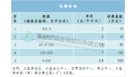 Сбор за консультационные услуги по оценке воздействия на движение может быть основан на « Стандарте платы за отчет об оценке воздействия на движение строительных проектов», подготовленном Китайским институтом городского планирования и проектирования, следующим образом: